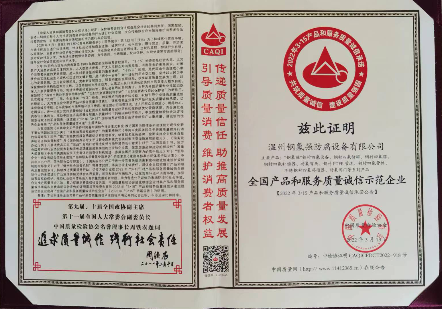全國產(chǎn)品和服務(wù)質(zhì)量誠信示范企業(yè) |
