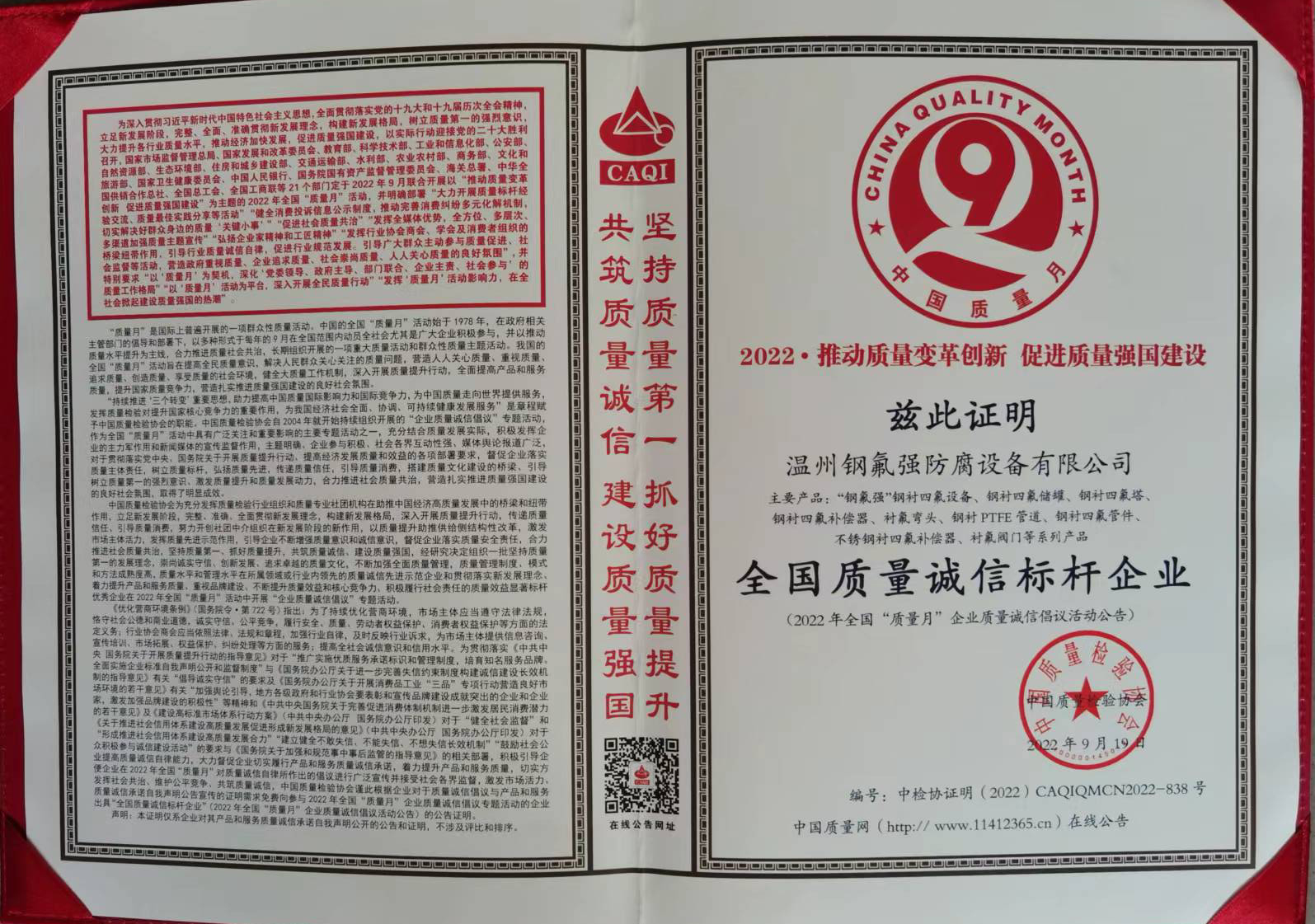 全國質(zhì)量誠信標(biāo)桿企業(yè) |